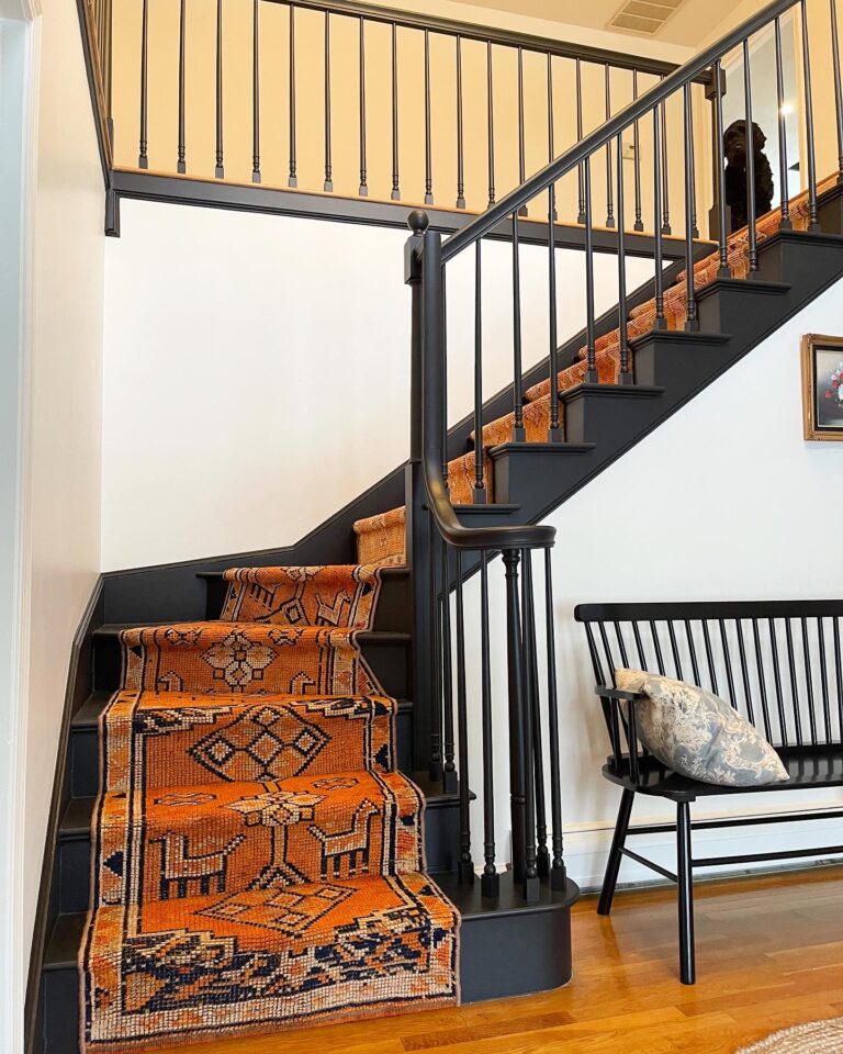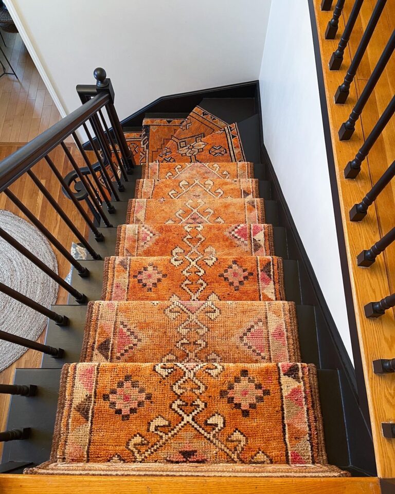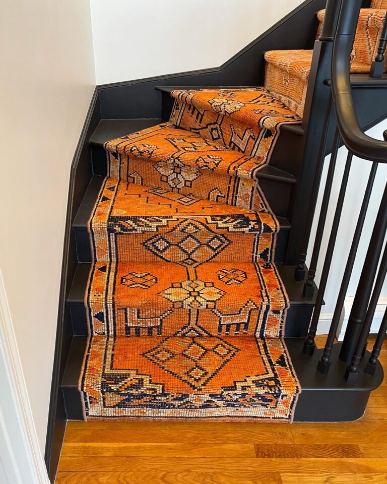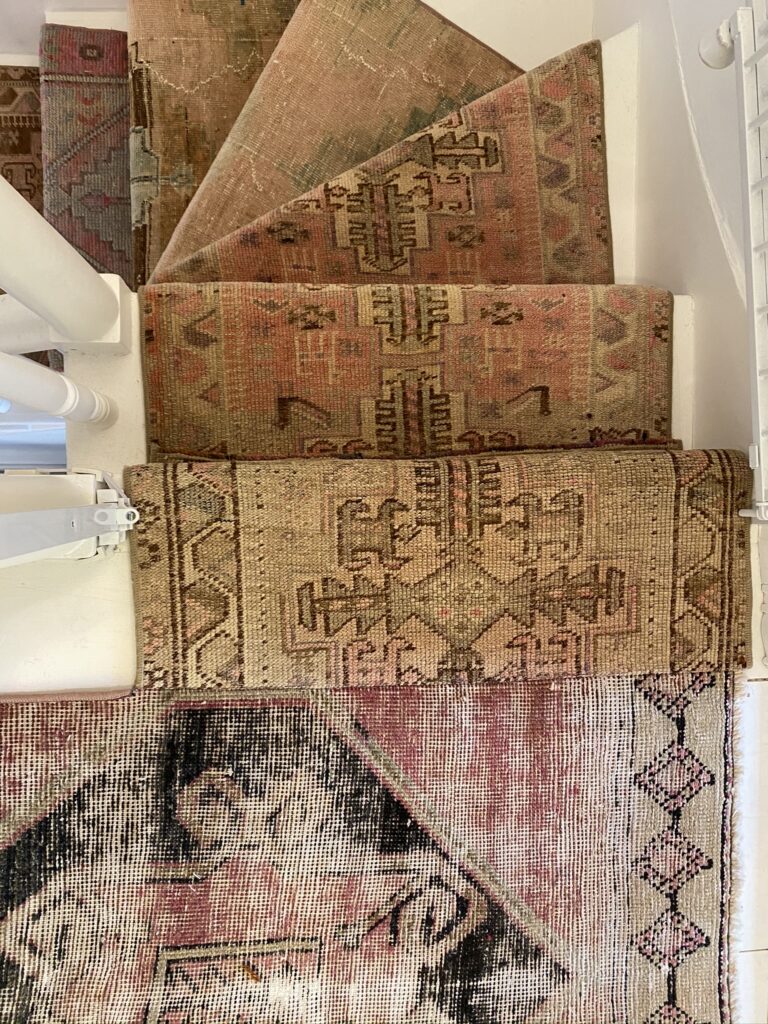 Yes, antique rugs can be installed as stair runners. Once you select your preferred rug style, our team can step into fabrication and customize it for a seamless install on your staircase. However, it’s important to consider the material and weave style when selecting a vintage rug for your stairs. Given that stairs see a lot of foot traffic, you want to choose a style that is durable enough to withstand it. Our experts at New England Loom can guide you in selecting the most suitable option for your needs. You can always inquire directly with the pros at New England Loom or our project managers to identify a style that will serve best for your needs.